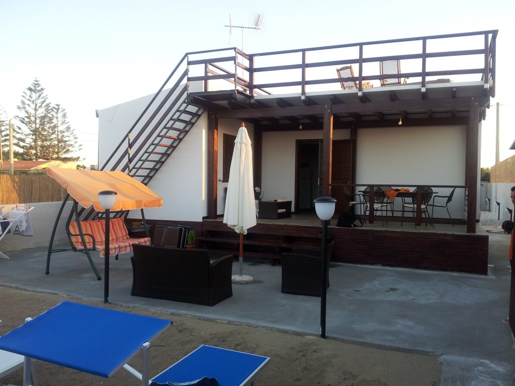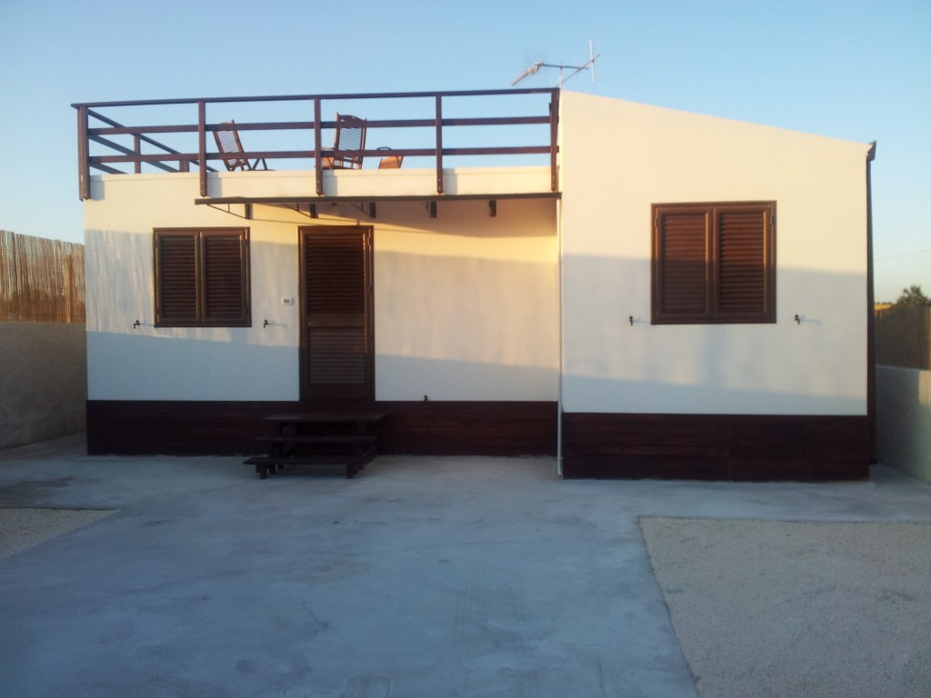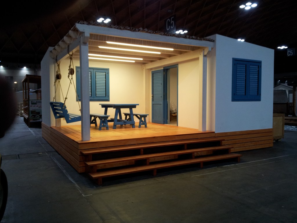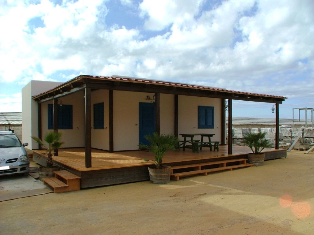 A corredo della casa mobile può essere accostata una tettoia smontabile in legno avente una base solamente appoggiata al terreno realizzata in profili scatolari zincati.